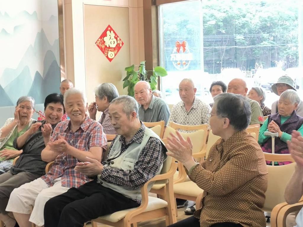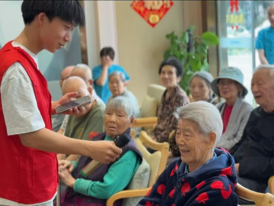 活动当天,养老院里热闹非凡,处处洋溢着温馨的氛围。演出在有趣的《劳动词汇猜谜》游戏中拉开帷幕,老人们积极参与,让现场充满欢声笑语,同时也传递了劳动的魅力。随后,精彩的节目轮番上演,热情的歌曲《相亲相爱》表达了志愿者对于老人们的关爱;风趣幽默的相声表演《五一趣事》,引得大家开怀大笑;深情的朗诵《五月的赞歌》为老人们送上了最真挚的祝福;趣味游戏《正话反说》带来了意想不到的惊喜与欢乐。最后,这次活动在老人们悠扬的合唱中迎来了尾声。