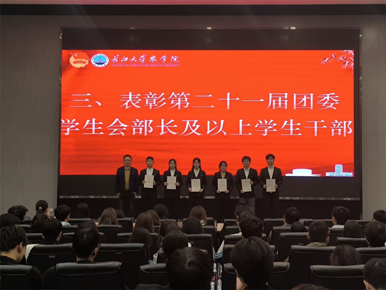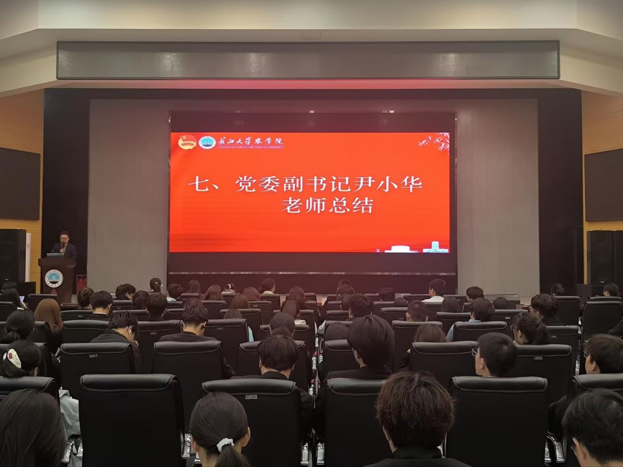 党委副书记尹小华老师发表讲话,总结学院学科竞赛、“三下乡”等工作成果,希望新成员做好师生桥梁与榜样,严守安全责任。他强调学生干部要立足服务、锤炼本领、勇于担当,为农学院发展贡献青春力量。最后,全体成员起立合唱校歌,宣告大会圆满结束。