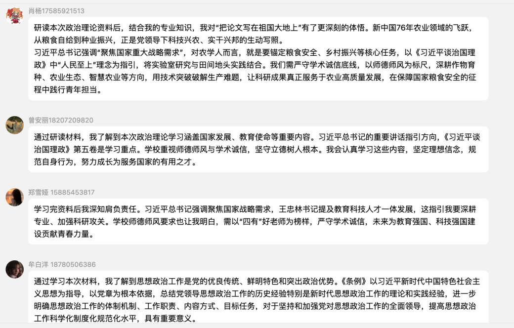 为深入学习贯彻习近平新时代中国特色社会主义思想,2025年10月,农学院组织全体研究生开展政治理论学习活动,在研究生群体中掀起思想热潮。