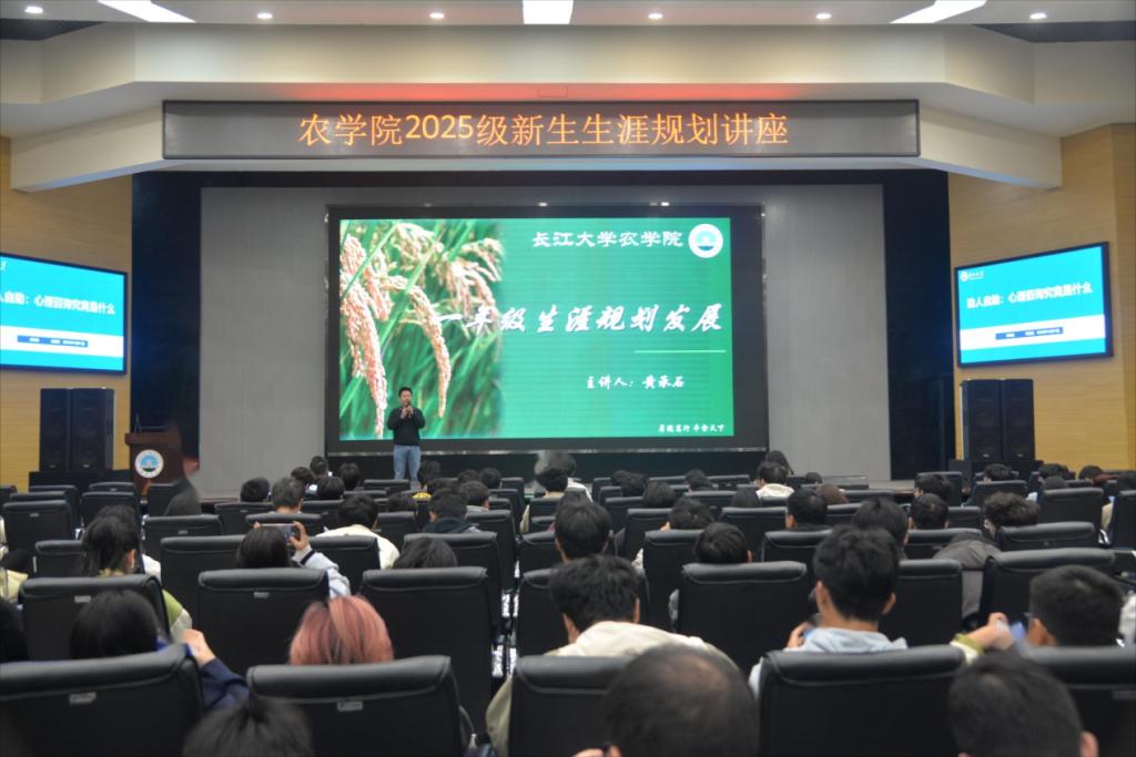 (通讯员 何遥 吴泓萱 孙夏彦 安菲菲 张源康 胡雪晴 向建华)为帮助新生拨开生涯迷雾、找准成长航向,11 月 11 日,农学院于农科大楼 1058 报告厅举办新生生涯规划专题讲座。本次讲座由就业专干黄承石主讲,农学院全体 2025 级本科生参会。