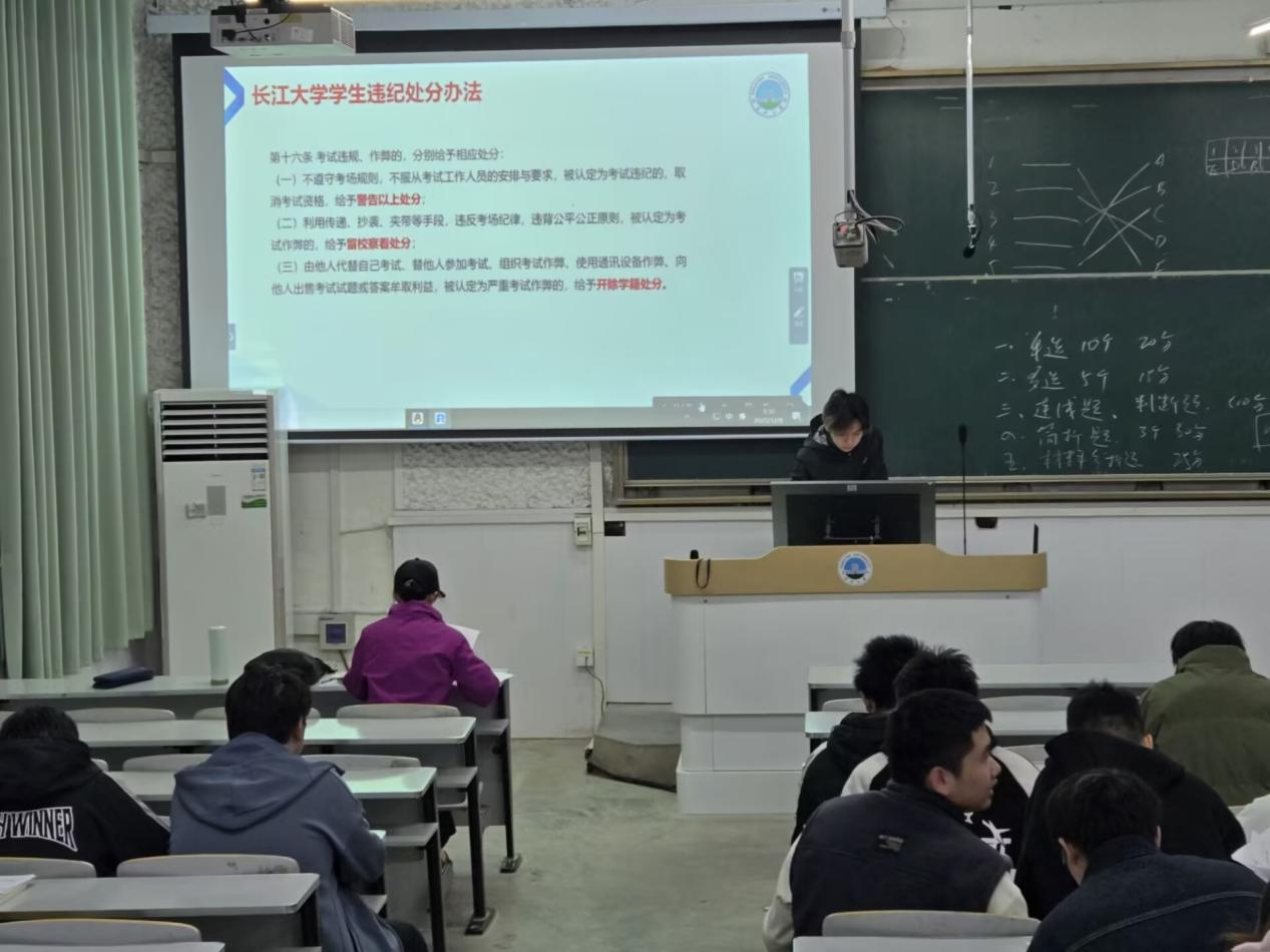考试诚信教育同步深入推进,主讲人从“学风建设的基石”“个人品德的标尺”双维度,深刻阐释诚信考试对校园风气塑造与个人长远发展的重要意义,引导同学们树立“以真才实学应考、以诚信品格立身”的正确观念。活动现场,全体同学庄重签署《长江大学学生考试诚信承诺书》,承诺严守考试纪律、杜绝作弊行为,以真实成绩检验学习成效,共同维护公平公正的考试环境。