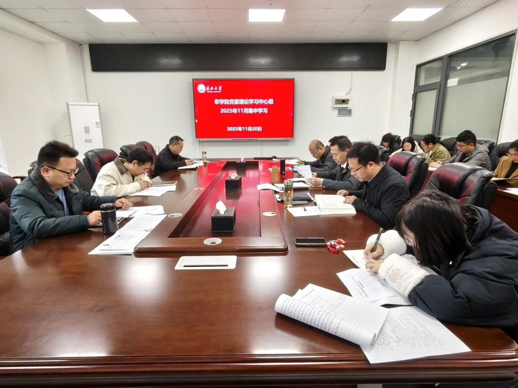 (通讯员 刘晓雪)11月20日上午,农学院党委理论学习中心组在农科大楼3064会议室举行11月集体学习会。农学院党委委员、领导班子成员和机关党支部全体党员参加学习,党委书记周锦华主持会议并作总结讲话。